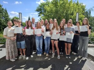Auch in diesem Schuljahr haben wieder Schülerinnen und Schüler der Stufen 8 bis EF unserer Schule erfolgreich an den DELF-Prüfungen auf den Niveaus A1, A2 und B1 im Rahmen der DELF-AG teilgenommen. Die Zertifikate, die in Paris gedruckt werden, sind am Freitag, 4. Juli, von der AG-Lehrerin Dajana Brouwer und Schulleiter Markus Ratajski an die 20 stolzen Schülerinnen und Schüler übergeben worden. Vous êtes super! Félicitations à tous!