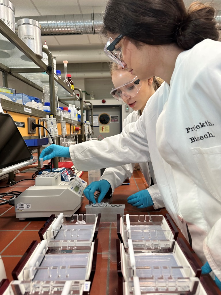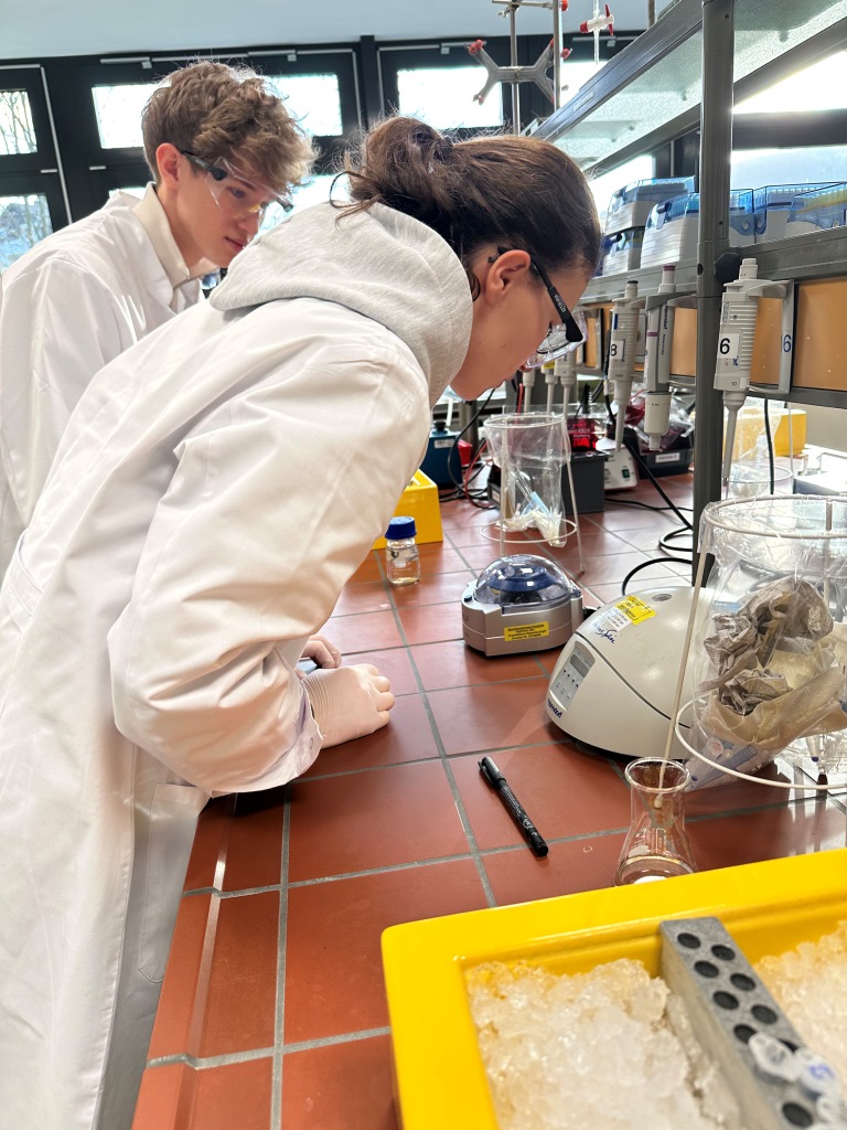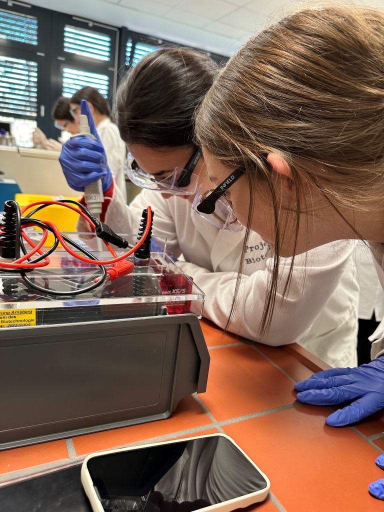 Ist in der Wurst, was auf dem Etikett steht? Diese Frage stellte sich am 11.12.25 der Bio Kurs der Q2. Weil man das nur im gentechnischen Labor klären kann, machte sich der Kurs zusammen mit der Lehrerin Frau Schulte auf zum Projektbüro Biotechnologie am Berufskolleg Bigge-Olsberg. Die Untersuchung von Wurstproben erfolgte mit gentechnischen Verfahren, die dem Kurs vorher nur theoretisch bekannt waren: PCR und Gelelektrophorese. Was im Buch so einfach und unkompliziert aussieht, ist in der Realität eine ganze Menge Arbeit, bei der man strukturiert 7nd sorgfältig arbeiten muss, damit die Verfahren das gewünschte Ergebnis bringen! Dank der tollen Planung und umsichtigen Leitung durch Frau Dr Busch konnten die meisten Stolpersteine umgangenwerden.